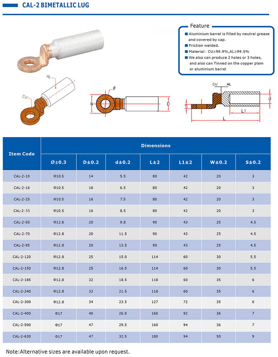 Prev:CAL-1 CABLE BIMETALLIC LUG